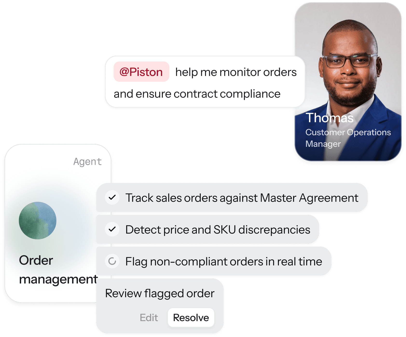 An automation tool follows rules. A Piston agent understands context, analyzes data, makes decisions, and acts while letting you approve. It's a smart teammate, not a rigid workflow.
