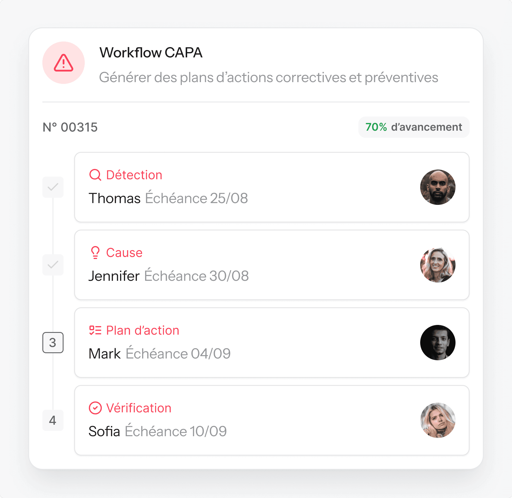 Détecte les non-conformités, automatise les plans CAPA et applique les standards qualité