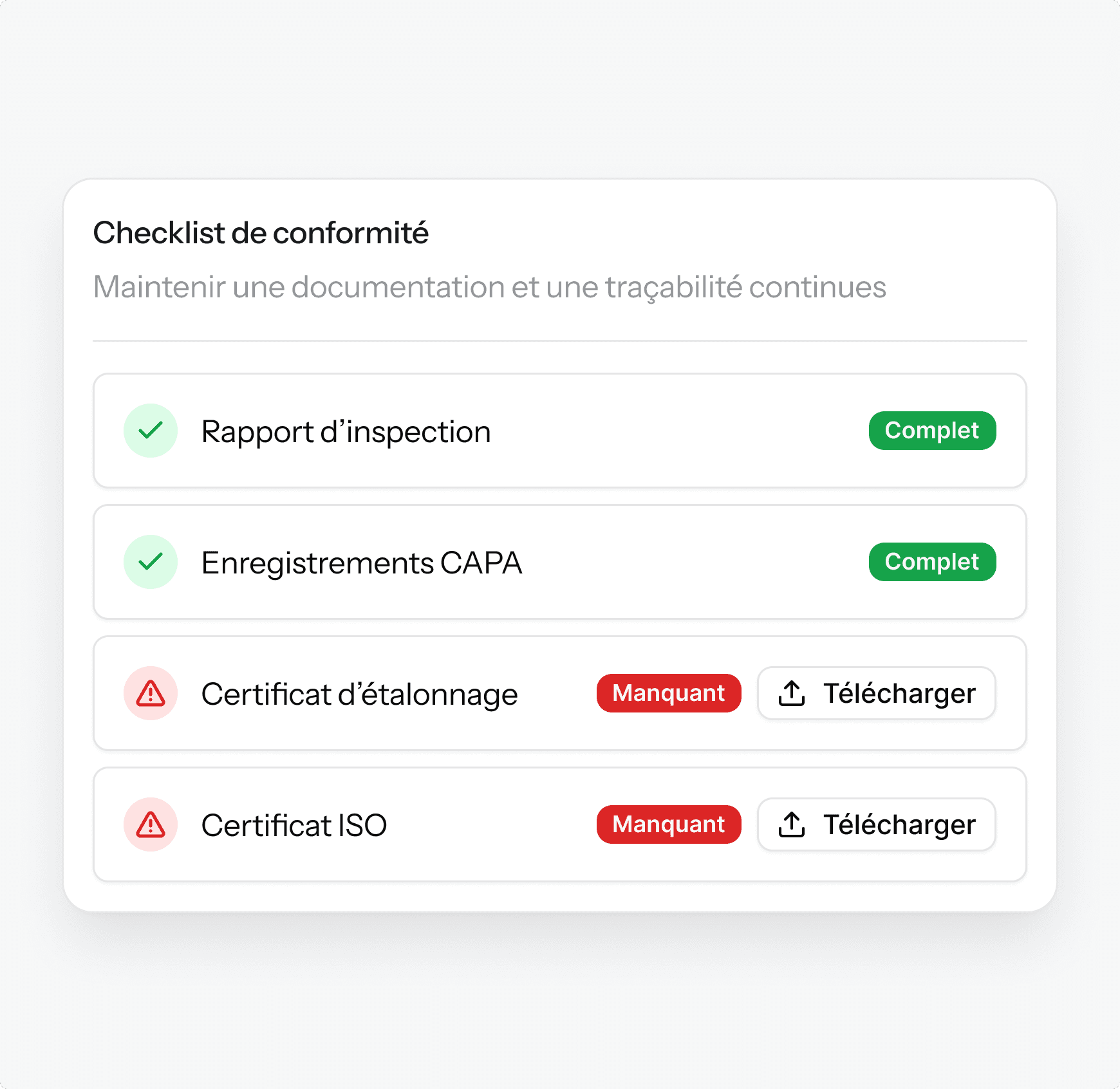 Documente en continu, vérifie les certificats et prépare vos dossiers sans rush de dernière minute.